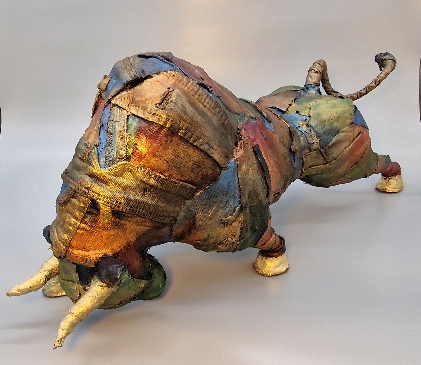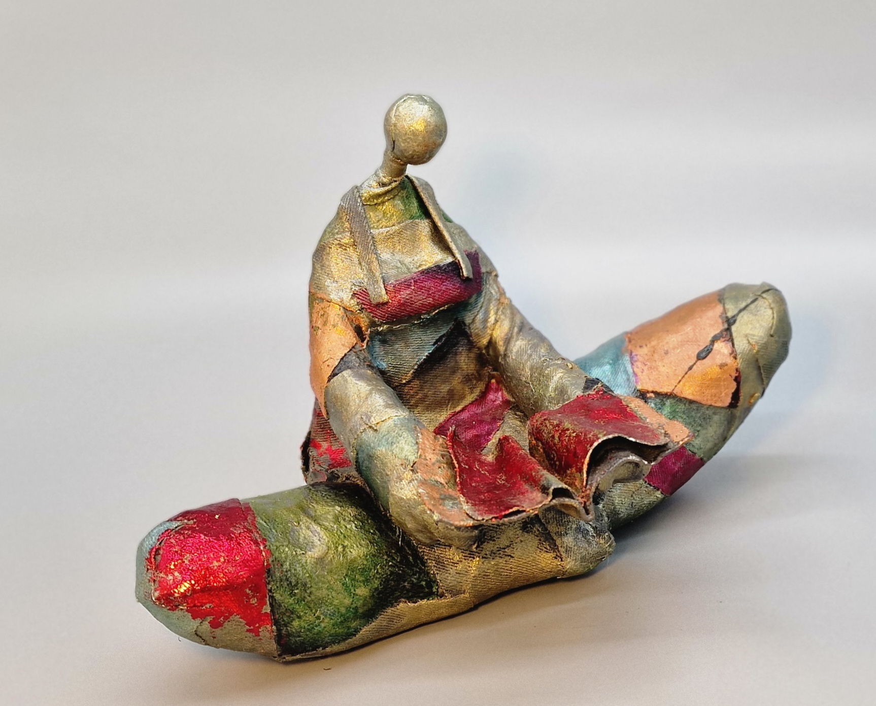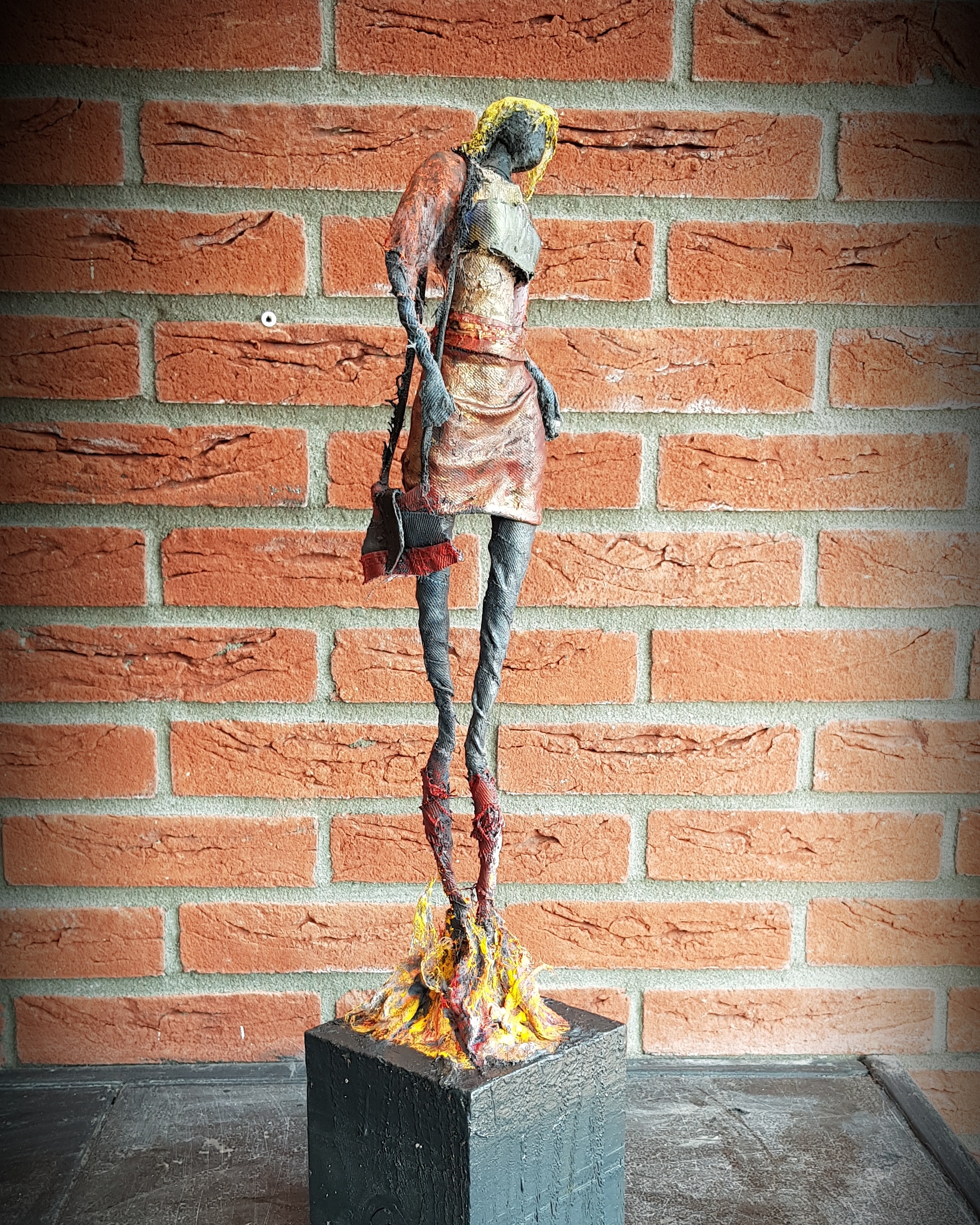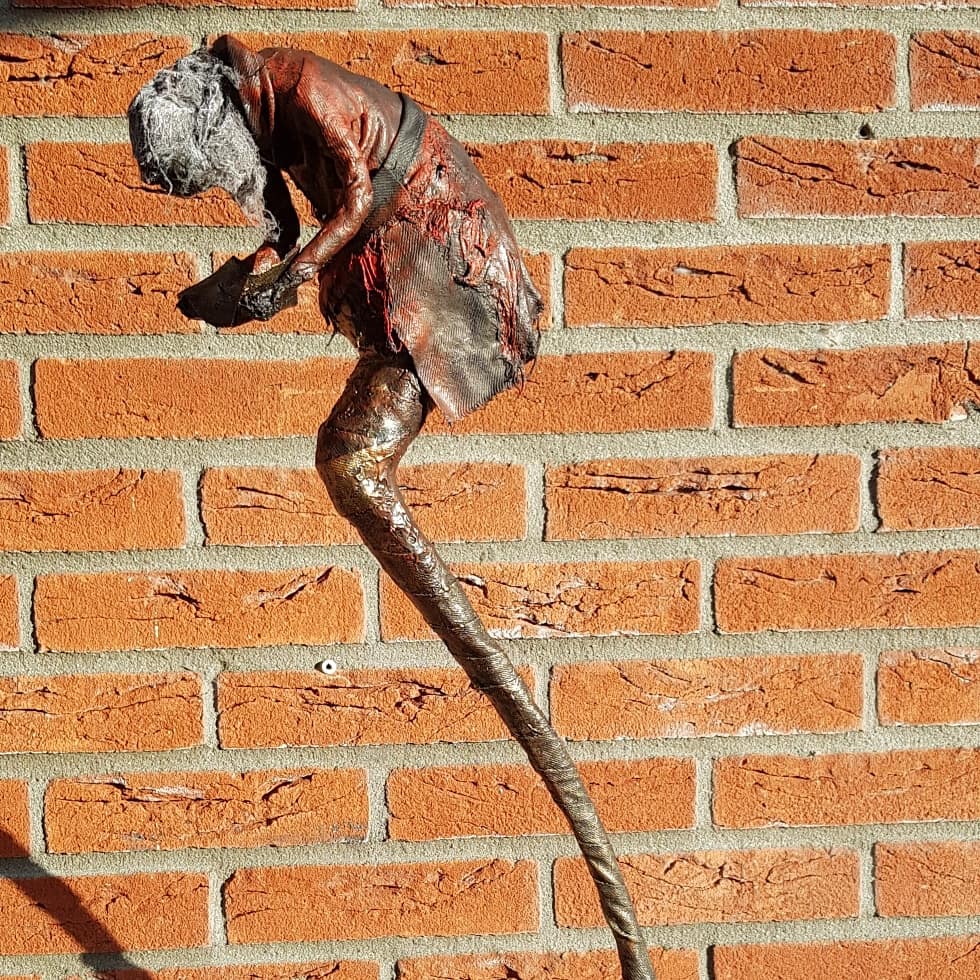 Oude kledingkunst is een creatieve en duurzame kunstvorm waarbij afgedankte kleding wordt omgetoverd tot expressieve kunstwerken. Door middel van naaien, verven, knippen en combineren met andere materialen, krijgen gebruikte stoffen een nieuw leven. Elke draad vertelt een verhaal – van de drager, het verleden, de vergankelijkheid. Kunstenaars zoals Ramin benutten deze materialen om beelden vol emotie en beweging te creëren. Metallic verf wekt het gevoel van brons tot leven, waardoor textielsculpturen kracht en diepte uitstralen. Oude kledingkunst verbindt mode, herinnering en hergebruik in een visueel krachtig geheel dat zowel maatschappelijk als esthetisch tot nadenken stemt..