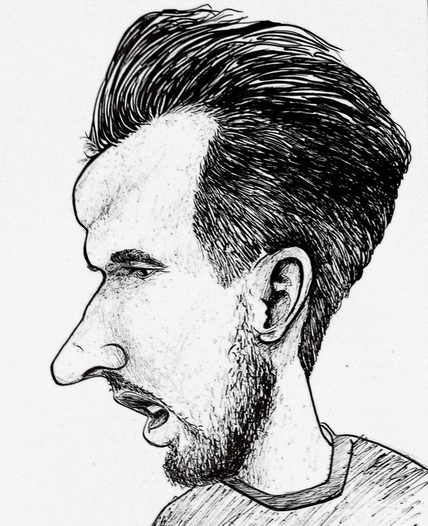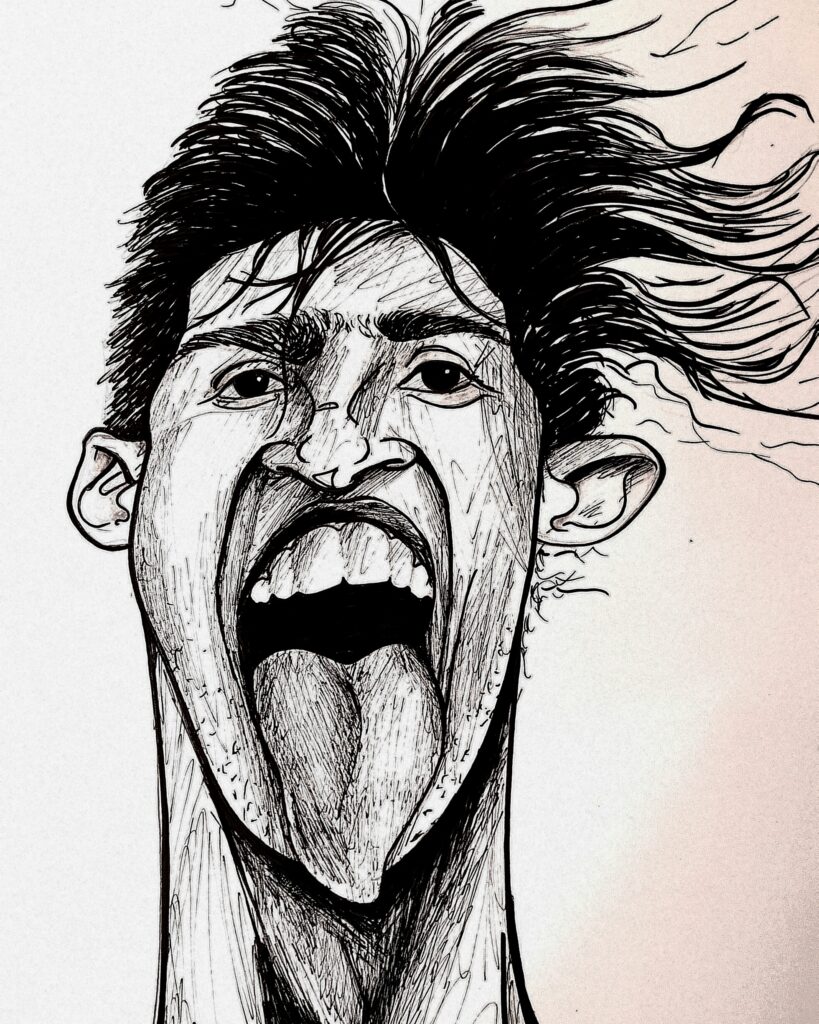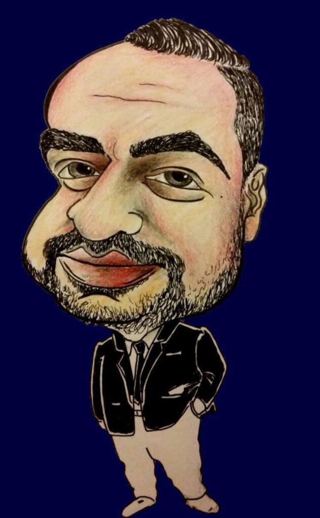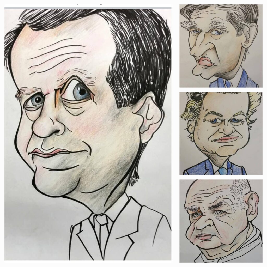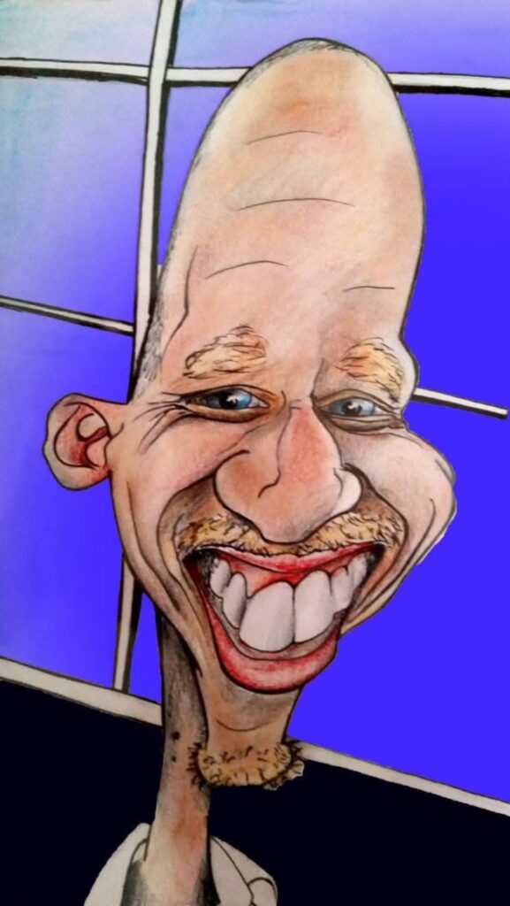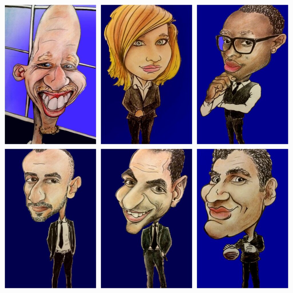Ramin maakt meer dan alleen kunst uit oude kleding. Zo maakt hij ook karikaturen en muurschilderingen.